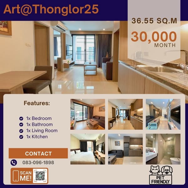 Condo for rent at Art @ Thonglor 25, 36.55 sq.m., 7th floor, 1 bedroom, 1 bathroom.