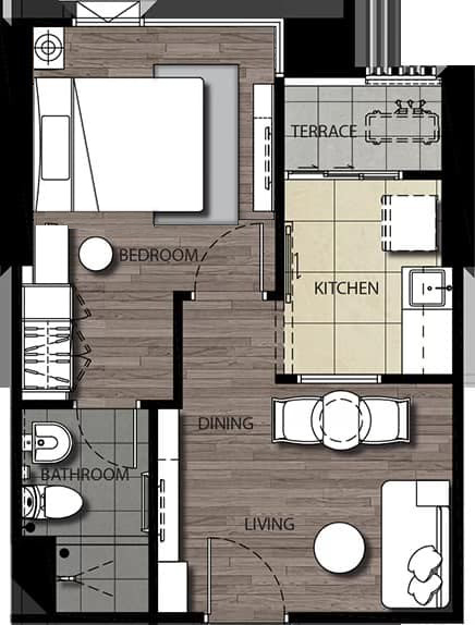 Sewa Kondo Unio Ramkhamhaeng - Serithai 33.5 m². Lantai 15 1 Kamar tidur 1 Kamar mandi