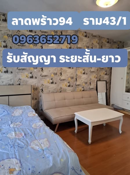 Disewakan kondominium Lumpini Condo Town Bodindecha - Ramkhamhaeng 1 kamar tidur 1 kamar mandi.